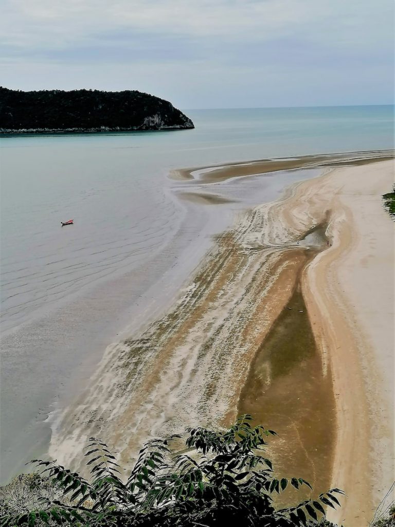 Visiter la Thaïlande et surtout cette incroyable grotte près de Hua Hin. La montée pour Praya Nakhon Cave commence sur le côté de la plage dans le parc de Khao Sam Roi Hot. Vous avez une première montée le long de la mer avec un muret en béton pour sécuriser le chemin. Au loin, vous apercevez quelques petites îles avec une végétation dense. Un petit belvédère cerné de cactus permet une petite halte, car la chaleur est étouffante. Le point de vue sur la plage est sublime.
